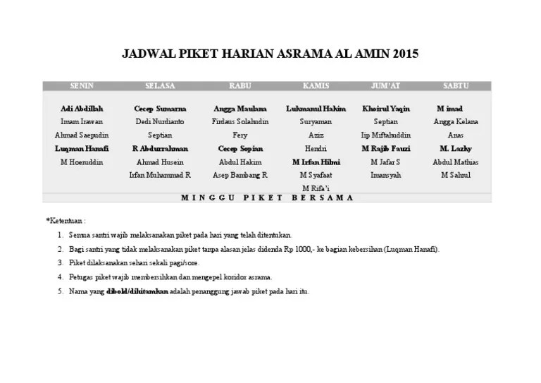 2 santri mengganti pakaian lebih dari 3 hari. Akan pentingnya menjaga lingkungan di pondok pesantren. Yuk, simak pembahasan quipper blog di bawah ini! Download contoh desain jadwal piket kreatif dan unik. Download contoh desain jadwal piket kreatif dan unik terbaru penulis cilik sekolah motivasi latihan pelajaran komputer.